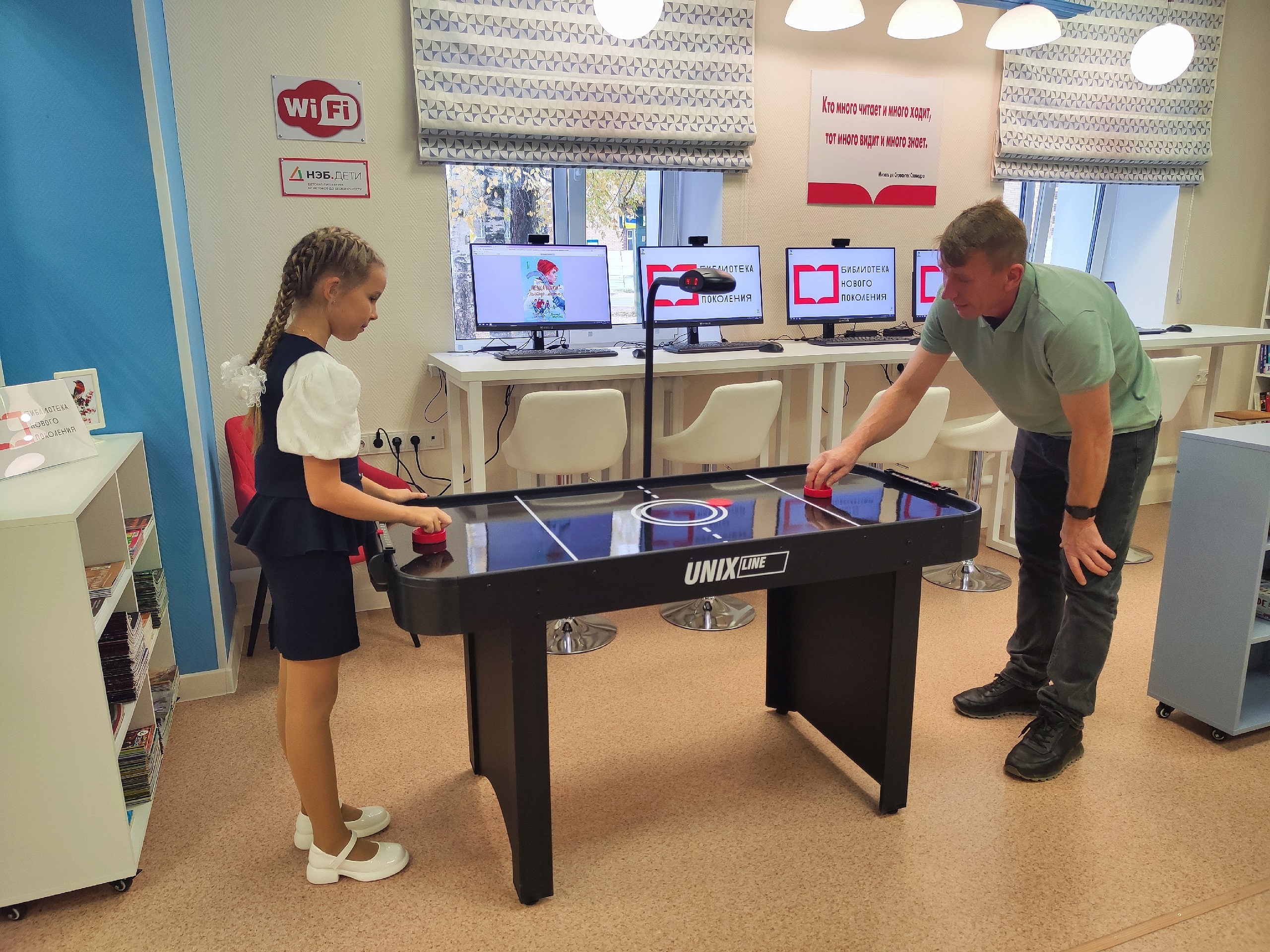 В библиотеке проведено техническое оснащение, приобретены компьютеры, интерактивные панели, проектор и мультимедийное оборудование. Библиотека становится местом, где можно учиться, работать и общаться, оставаясь в курсе последних событий, это настоящий культурный центр, где каждый сможет найти занятие по душе. Интерактивный глобус нового поколения позволяет в увлекательной форме получить первоначальные знания по географии и узнать множество интересной информации о нашей планете. С помощью интерактивного стола дети и их родители получат доступ к системе «Устьяны. Спорт. Библиотека». Она предоставляет полную и актуальную информацию в области физической культуры, здорового образа жизни, развития массового спорта в Устьянском округе.