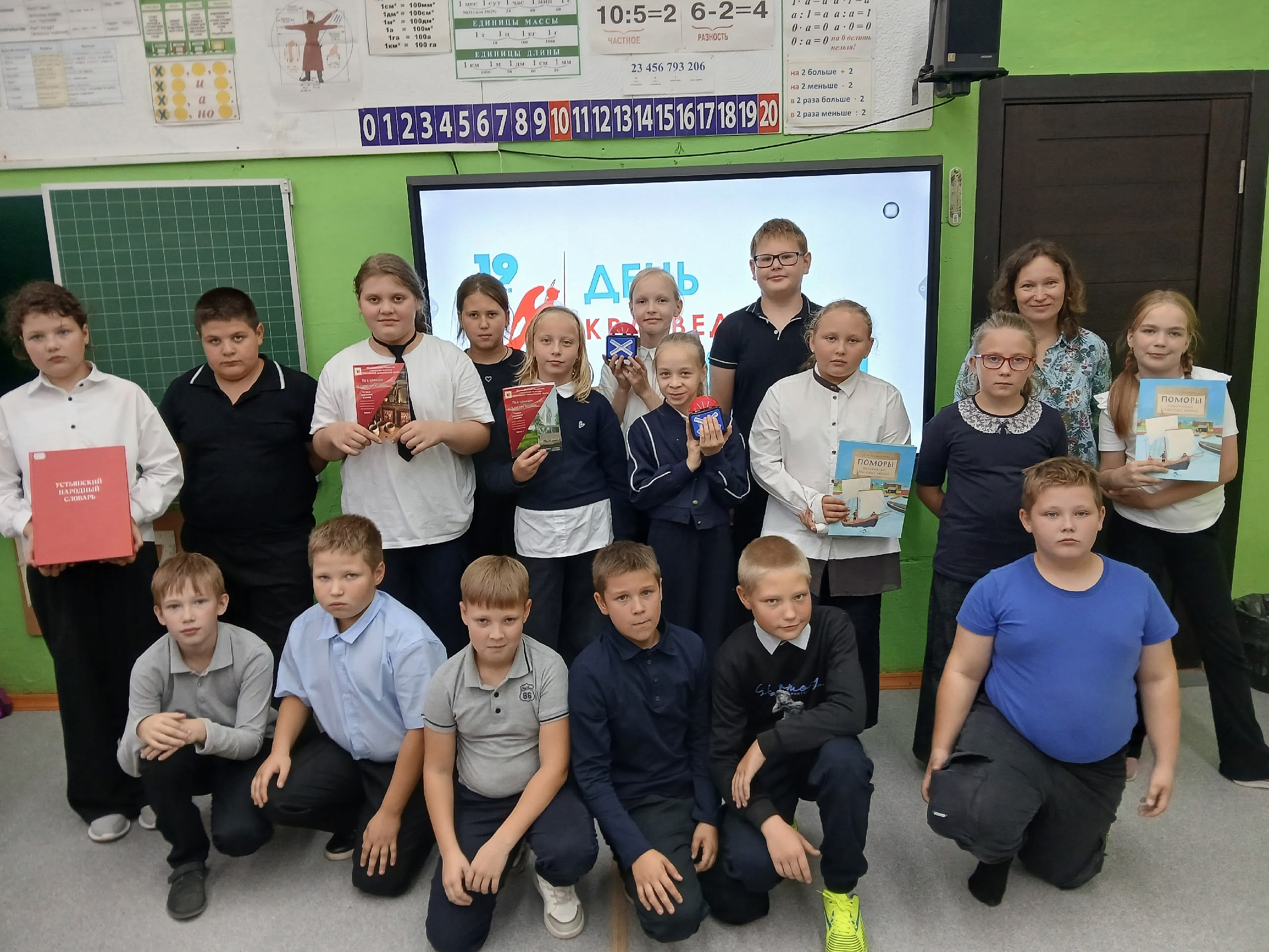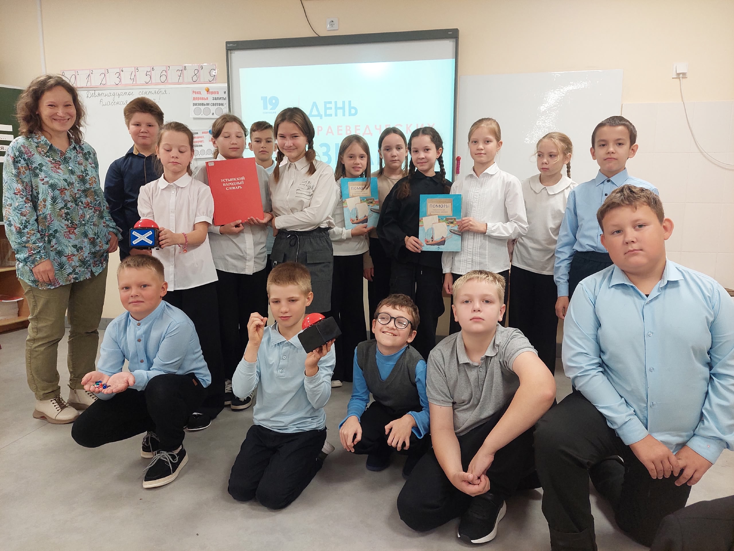 Ко Дню краеведческих знаний Юлия Павловна, вдохновившись участием в интенсиве, разработала командную познавательную игру для учащихся 4-х классов «Знатоки родного края». 19 сентября ребята из 4 «А» и 4 «Б» классов Устьянской средней школы собрались на игру.